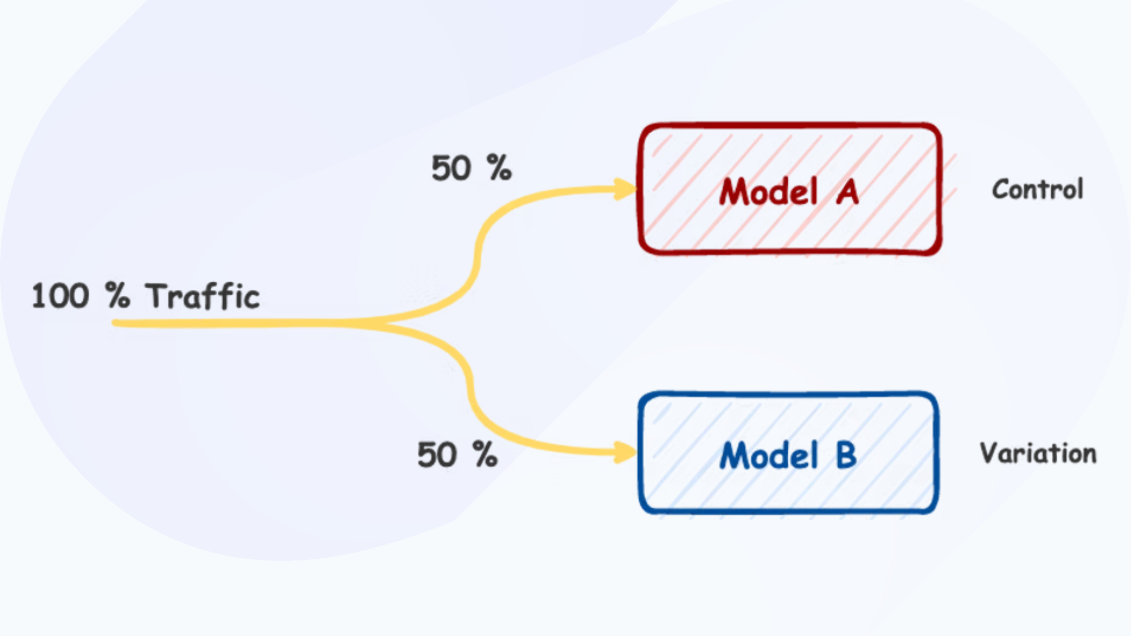 Let’s consider the case when we want to test the model’s performance. To run A/B testing, we need to: