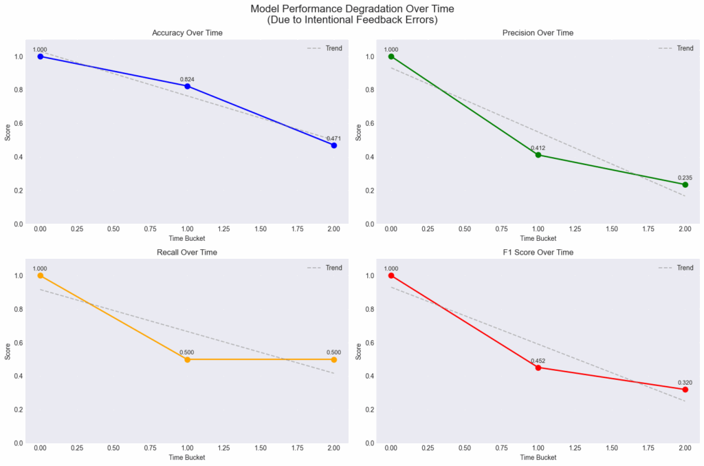 This demonstrates how Seldon’s Model Performance Metrics (MPM) Module catches model degradation that would otherwise go unnoticed until business impact becomes severe.